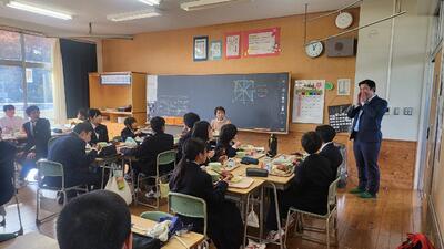 本日4時間目から給食の時間にかけて、鳩山町町長の小川知也様が学校の様子を見学に来校されました。
