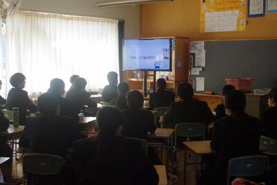 25.11.26 薬物乱用防止教室 投稿: 鳩山中 (11/26) 11月26日(水)期末テスト終了後、今年はインフルエンザ感染予防のためオンラインにて薬物乱用防止教室を実施しました。 本年度は「さいたま少年鑑別所地域非行調査官」の方に講義をいただきました。 薬物自体そして依存症のおそろしさ、そしていざというときに相談できる存在の大切さについてお話しをいただきました。 Tweet -