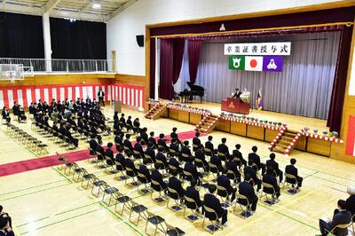 26.03.14 第75回卒業証書授与式 投稿: 鳩山中 (16:52) 3月14日(土)鳩山町立鳩山中学校第75回卒業証書授与式が挙行され、71名の卒業生がそれぞれの進路に向かって旅立ちました。 生徒たちはとても素晴らしい態度で、呼名の返事、各種所作、歌…どれをとっても感動で気でした。 また、その後行われた「門出送り」では在校生が応援歌を歌う中、卒業生たちが笑顔で旅立っていました。 71名のこれからの未来に幸多からんことを願っています。 Tweet -